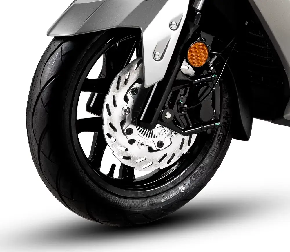 El Joymax Z 300 cuenta con sistema de frenado ABS y control de tracción TCS para garantizar una frenada segura y estabilidad óptima en cualquier condición, mejorando la seguridad y el control del piloto.
